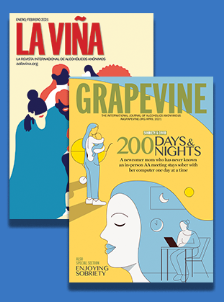 Grapevine and La Viña, published by AA World Service, comprise stories, in English and Spanish, respectively, by AA members worldwide about their recovery experiences. A link to the Grapevine on YouTube is also available.