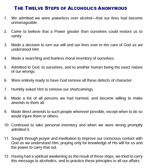 The 12 steps of AA are suggested for personal recovery,